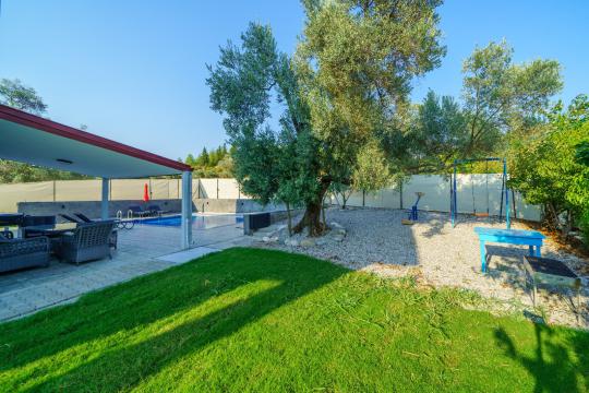Bahçe : Şezlonglar, güneş şemsiyesi, barbekü, sandalye ve masa bulunmaktadır.