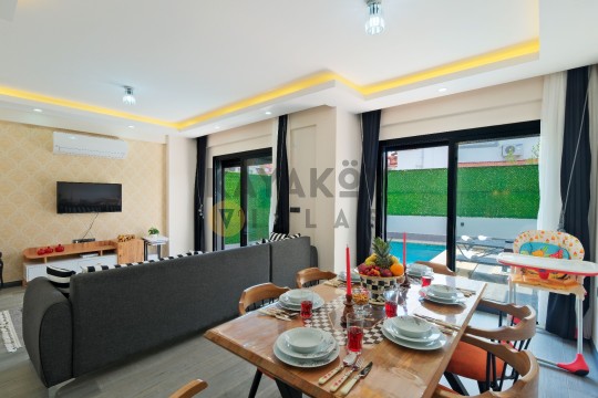 Muhteşem doğa manzarasına hakim olan villa, plaja, merkezi noktalara rahatlıkla ve kısa sürede ulaşabileceğiniz, konforlu bir konuma sahip olup; ayrıcalıklı bir tatilin keyfini sürebilecek, tatilinizin tadına varacağınız bu villa, keyifli bir mola için siz değerli misafirlerini ağırlamayı beklemektedir.