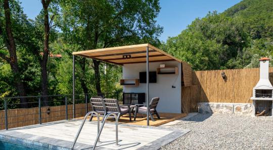 Villa Gökçeovacık'ın bulunduğu bu huzurlu konaklama yerinde ailece dinlenebilirsiniz. Villamız tamamen doğal taştan tasarlanmış olup, ahşap ağırlıklı iç tasarımıyla tamamlanmıştır. Odalar ve banyoları oldukca geniş tasarlanmıştır. Doğa içerisinde bir konumda denizden yaklasik 10 km iç bölgede Göcek'e bağlı Gökçeovacık mahallesindedir.