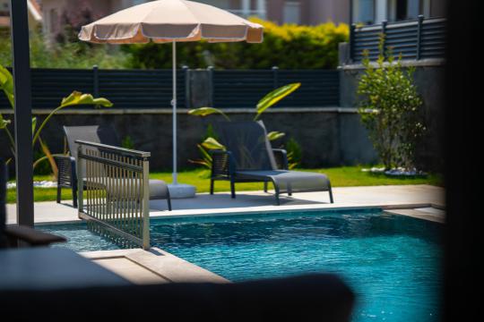 Korunaklı ve özel havuzlu bahçesiyle misafirlerine keyifli vakit geçirme olanağı tanıyan villa, güzel bir tatil geçirmeniz için özenle donatılmıştır.