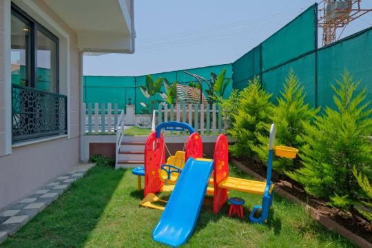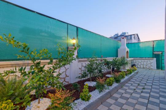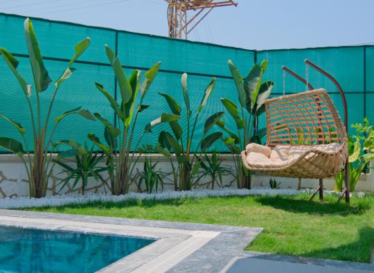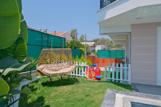 Bahçe : Bahçe içerisinde havuz ve şezlong, güneş şemsiyesi, sandalyeler, bahçe oturma grubu ve mangal yer almaktadır.