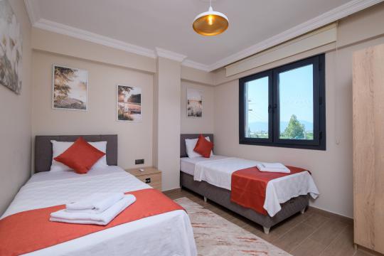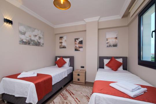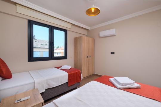 3. Yatak Odası : Oda içerisinde 2 adet tek kişilik yatak, komodin, kıyafet dolabı, TV, klima bulunmaktadır.