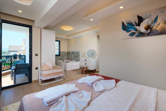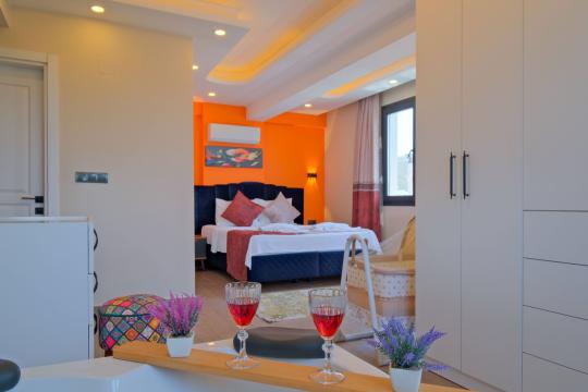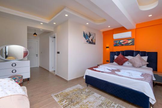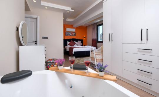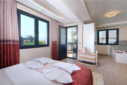 1. Yatak Odası : Oda içerisinde 1 adet çift kişilik yatak, komodin, giyinme odası, makyaj masası, klima, jakuzi, bebek park yatak, özel banyo/WC bulunmaktadır.