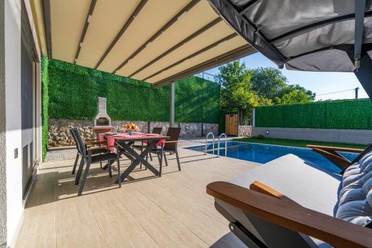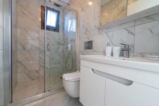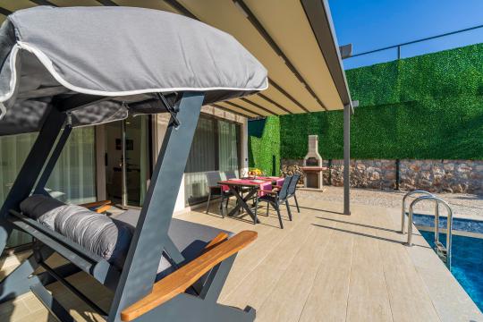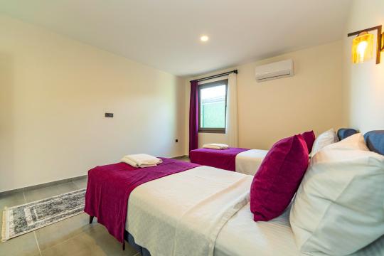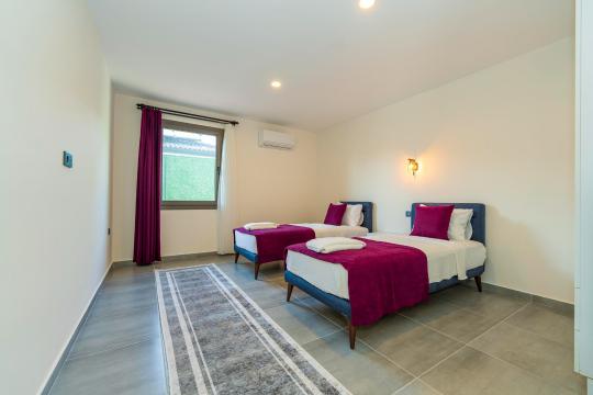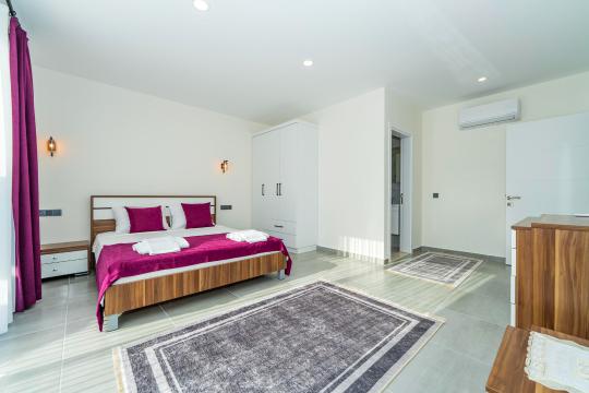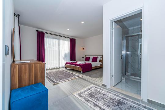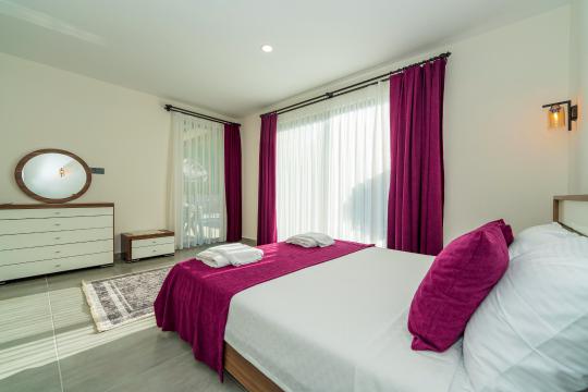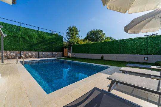 Villanın iç ve dış mekanı oldukça modern tasarlanmış olup havuz alanı korunaklıdır. Mahremiyetine önem veren misafirlerimiz için oldukça doğru bir tercihtir. Her yatak odasında tuvalet ve banyosu mevcuttur. Villamızın bulunduğu doğa manzarası eşliğinde tüm yıl beklediğiniz tatil keyfini doyasıya yaşayabilirsiniz.