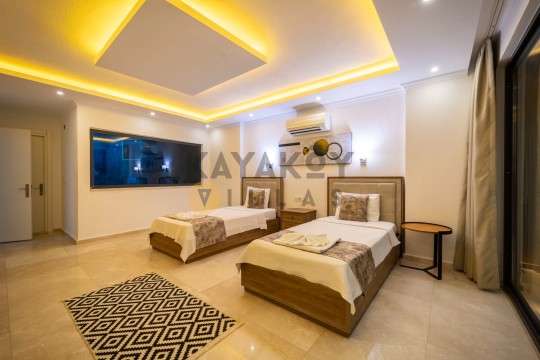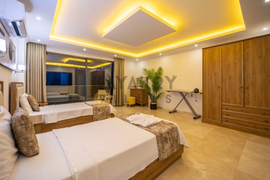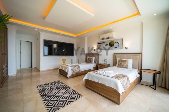 Villada toplam 3 yatak odası bulunur ve odalar modern konforla donatılmıştır. Birinci yatak odasında çift kişilik yatak, klima ve elbise dolabı yer alırken, ikinci ve üçüncü yatak odalarında her biri iki tek kişilik yatak ve klima bulunmaktadır. Her odada ferah ve rahat bir konaklama sağlanmıştır.