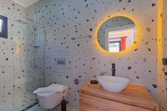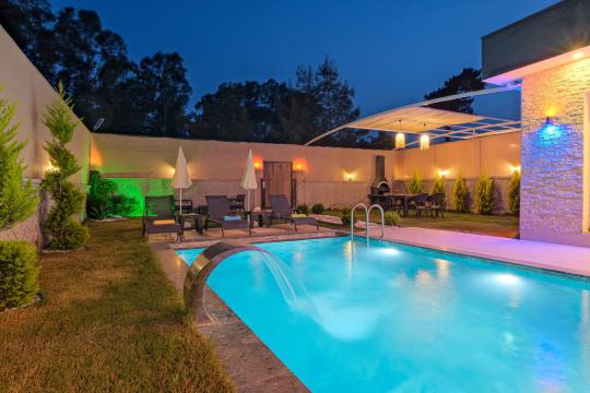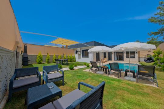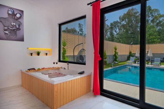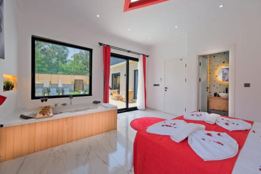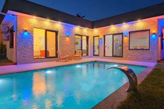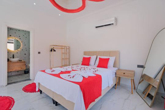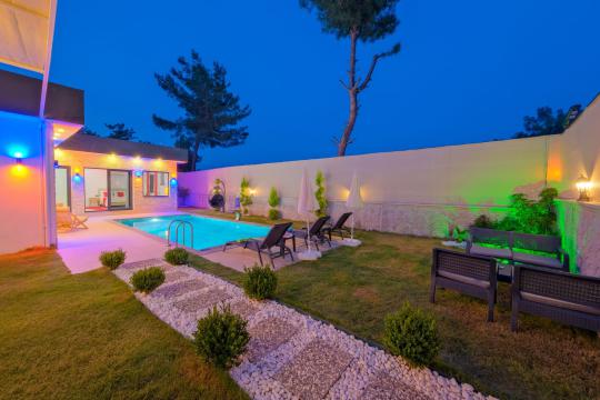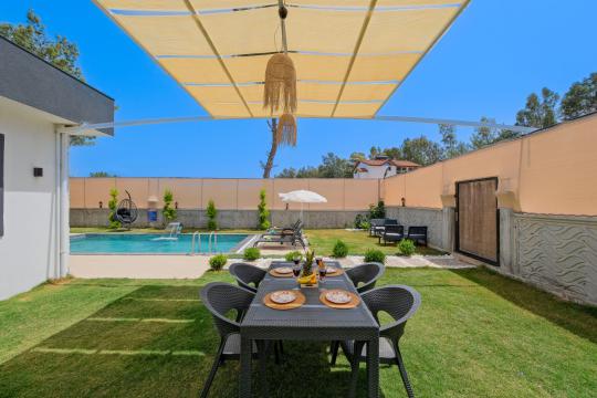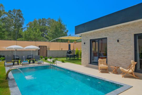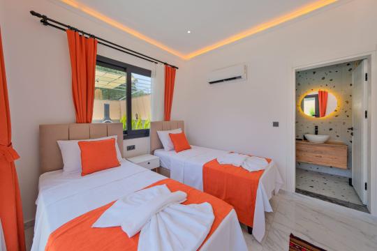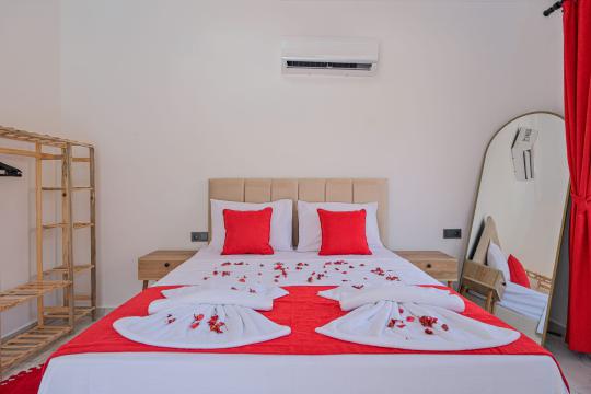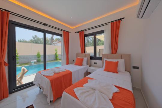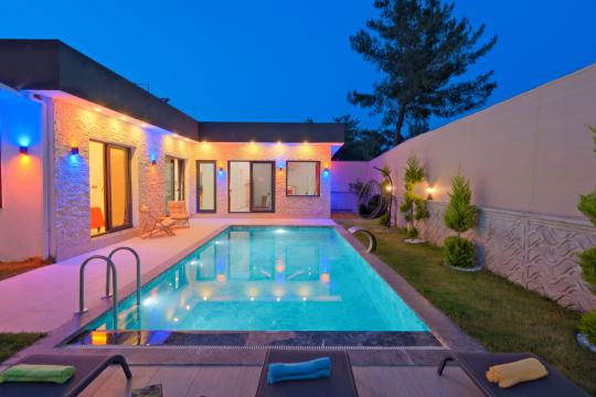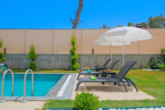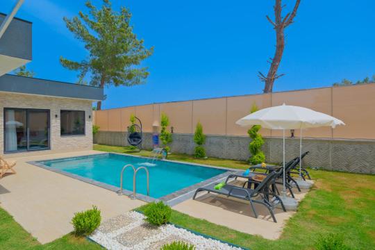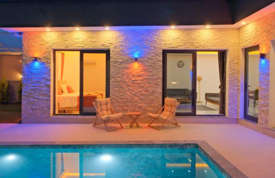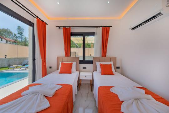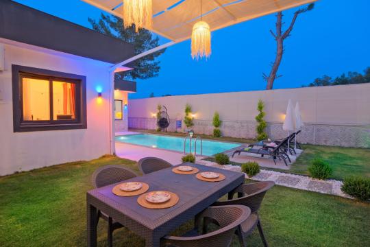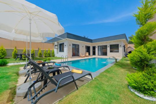 Toplam 2 yatak odasından oluşmuş, 4 kişi konaklama kapasitesine sahiptir. Çekirdek aileler ve arkadaş grupları ve balayı çiftleri için oldukça idealdir. Oldukça şık ve modern bir şekilde döşenmiş olan villamızda misafirlerimiz için her şey düşünülmüştür. Havuz terasında bulunan şezlonglarda güneşlenebilir, bahçe masasında muhteşem yemekler yiyebilir, salıncakta sallanıp keyifli dakikalar geçirebilirsiniz.