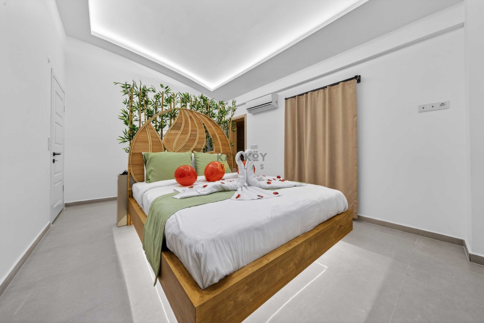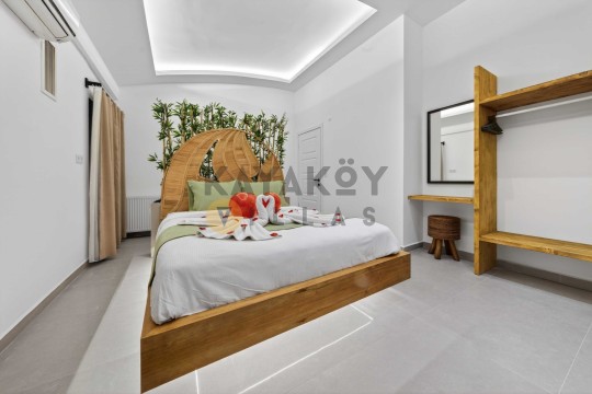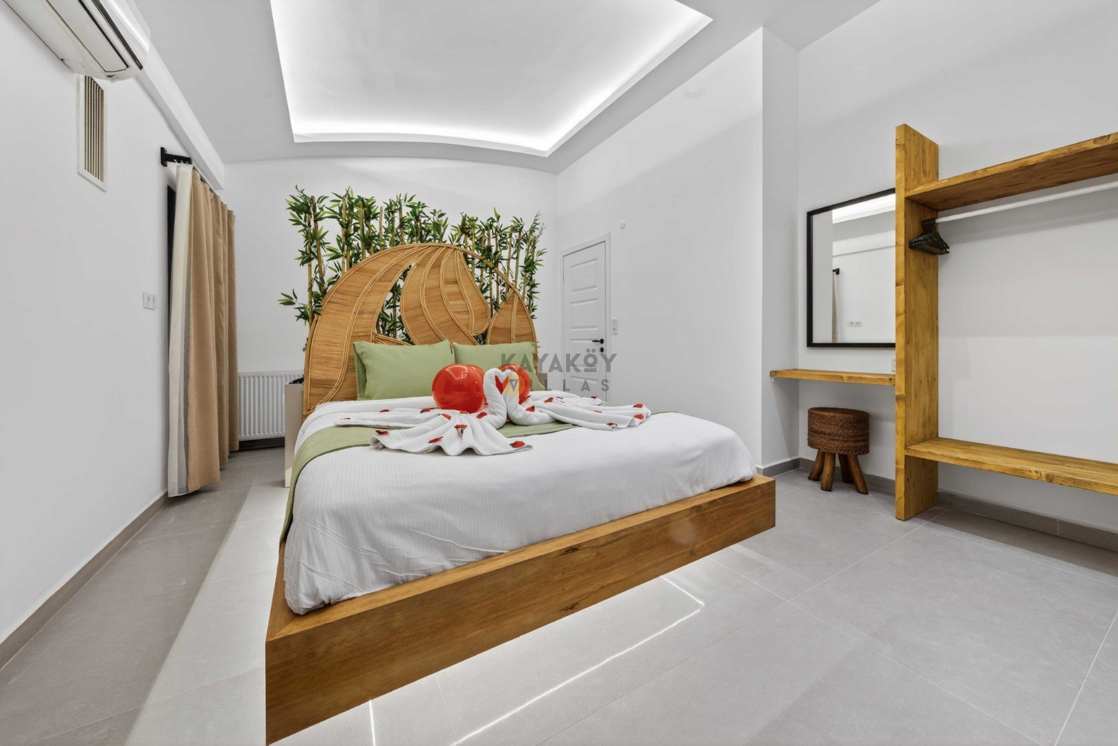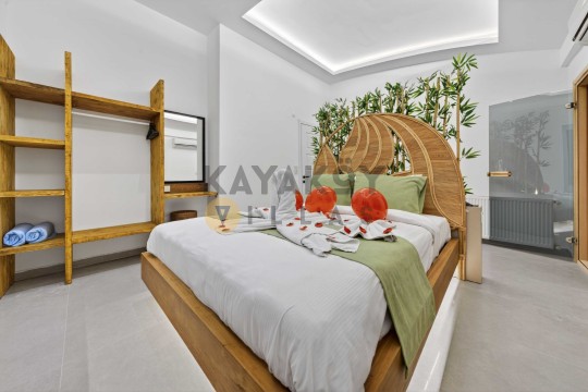Fethiye’nin tarihi Kayaköy bölgesinde yer alan Terra Ares, 2 yatak odasıyla 4 kişiye kadar konaklama imkânı sunar ve çekirdek aileler ile balayı çiftleri için ideal olarak tasarlanmıştır. 2024 yılında yenilenmiş iç mekân dekorasyonu ve konforlu yaşam alanlarıyla huzurlu bir tatil fırsatı sağlar. Isıtmalı özel havuzu, jakuzi ve saunasıyla tatilinizi hem dinlendirici hem de keyifli hâle getirir.