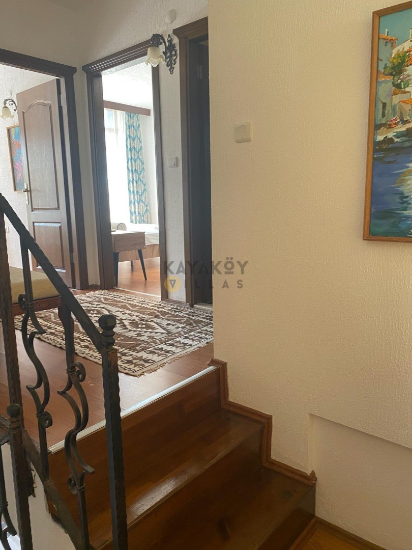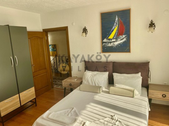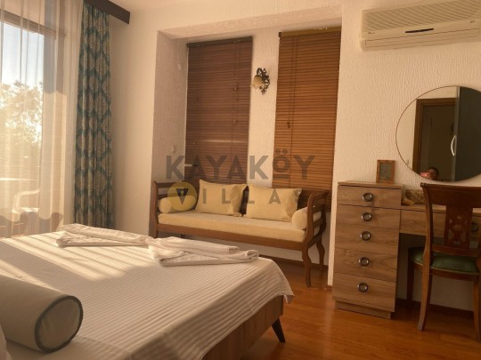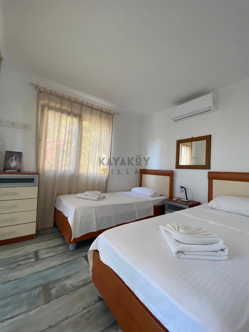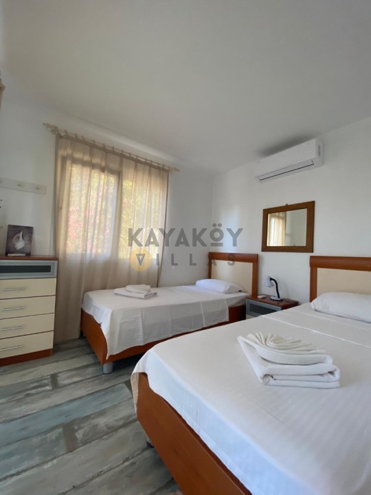 Villanın iç mekânı fonksiyonel ve konfor odaklı olarak tasarlanmıştır. Toplam 4 yatak odasından iki tanesi ana binada, iki tanesi ise bahçe içindeki misafirhane binasında yer alır; odalar çift kişilik ve tek kişilik yataklar ile donatılmıştır. Salon kısmında ise oturma grubu, TV, klima ve havuz terasına çıkış gibi konfor unsurları bulunur. Tam donanımlı mutfak buzdolabı, bulaşık makinesi, ocak-fırın gibi ekipmanlarla tatil boyunca ev rahatlığını sunar.