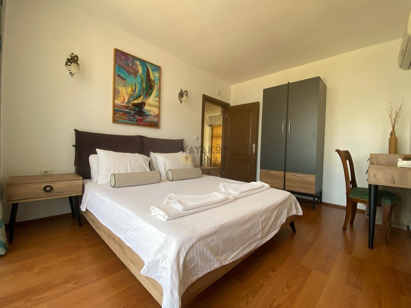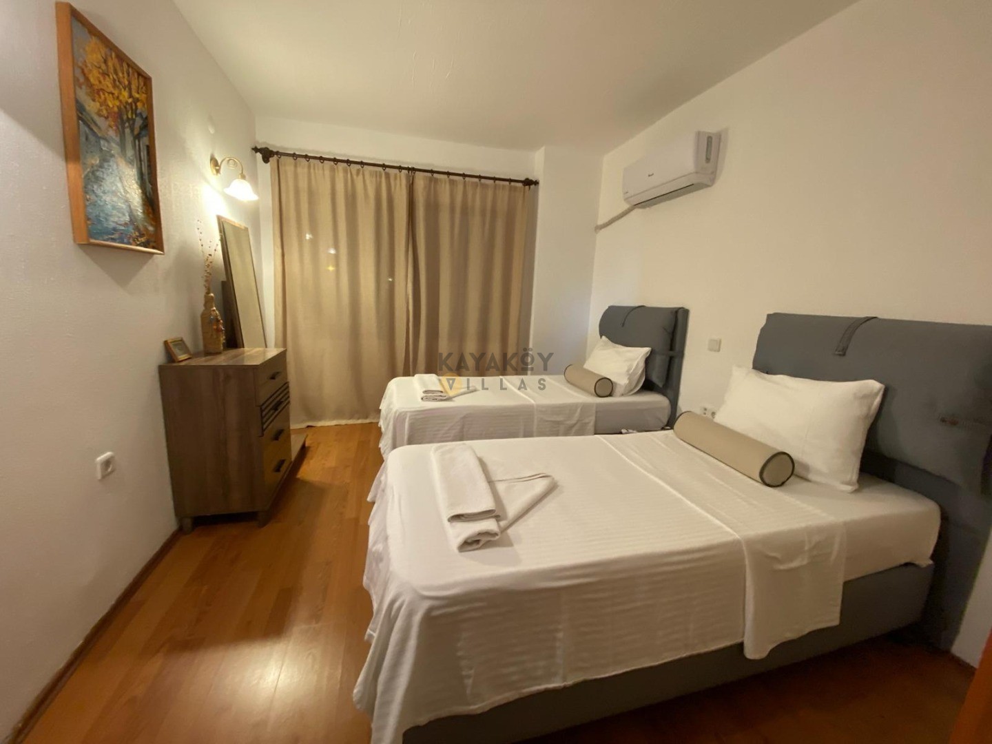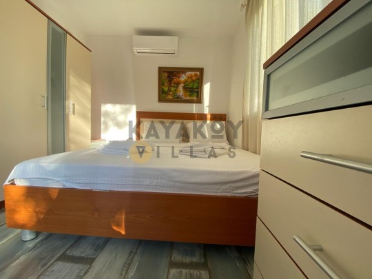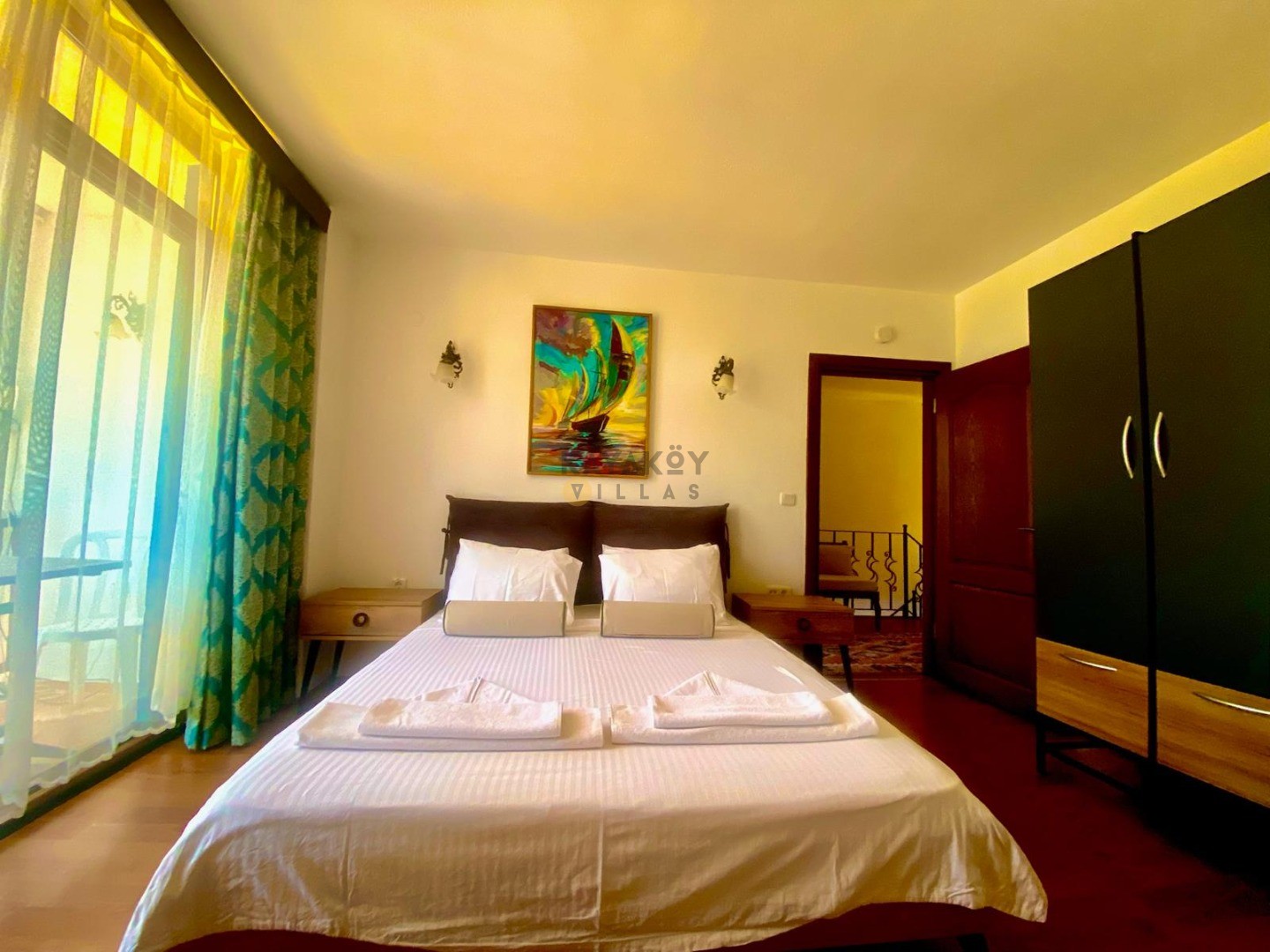 Villanın iç mekânı fonksiyonel ve ferah şekilde tasarlanmıştır. Toplamda 4 yatak odasından iki tanesi ana binada (1 çift kişilik ve 2 tek kişilik yataklar) ve diğer iki odası bahçedeki misafirhane binasında (1 çift kişilik ve 2 tek kişilik yataklar) yer alır; salon bölümündeki açılır-kapanır koltuklar sayesinde ilave 2 kişiye kadar konaklama imkânı sunar. Tam donanımlı Amerikan mutfak, buzdolabı, bulaşık makinesi ve diğer temel ekipmanlarla tatil boyunca evinizdeki konforu yaşamanızı sağlar.