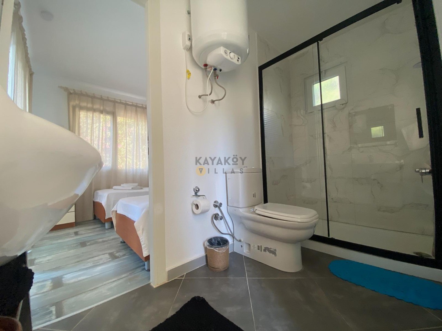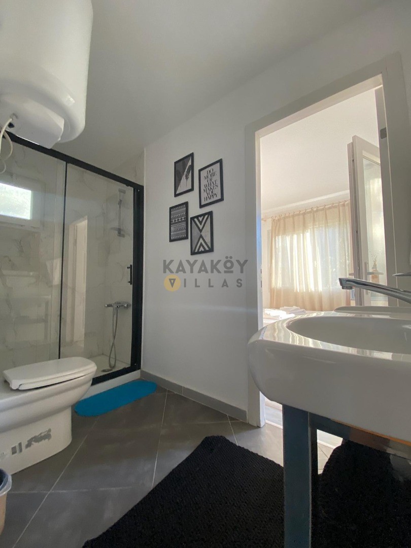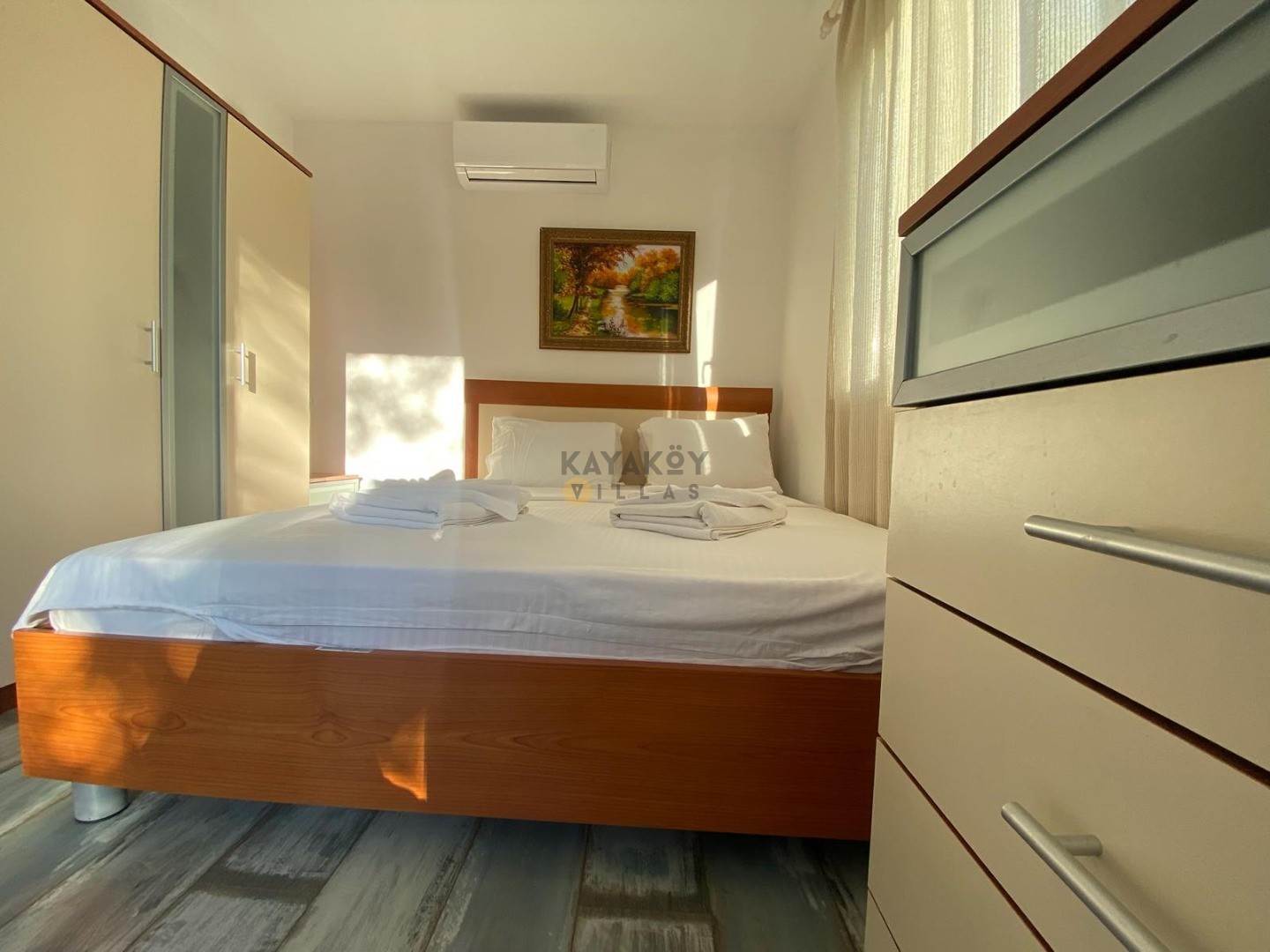 Villanın iç mekânı fonksiyonel ve ferah şekilde tasarlanmıştır. Toplamda 4 yatak odasından iki tanesi ana binada (1 çift kişilik ve 2 tek kişilik yataklar) ve diğer iki odası bahçedeki misafirhane binasında (1 çift kişilik ve 2 tek kişilik yataklar) yer alır; salon bölümündeki açılır-kapanır koltuklar sayesinde ilave 2 kişiye kadar konaklama imkânı sunar. Tam donanımlı Amerikan mutfak, buzdolabı, bulaşık makinesi ve diğer temel ekipmanlarla tatil boyunca evinizdeki konforu yaşamanızı sağlar.
