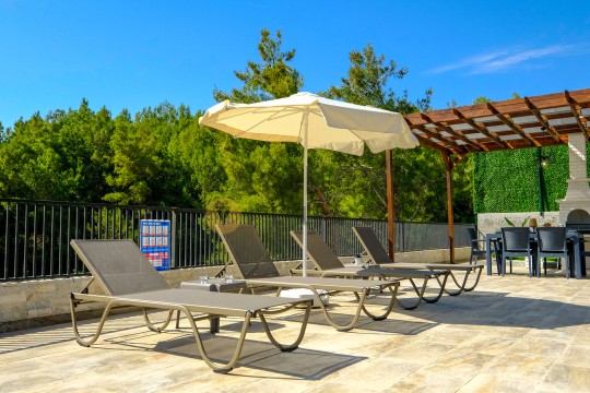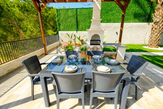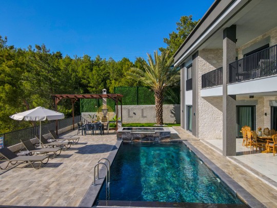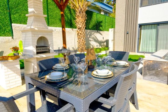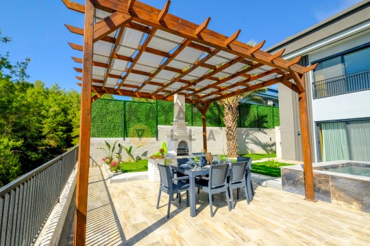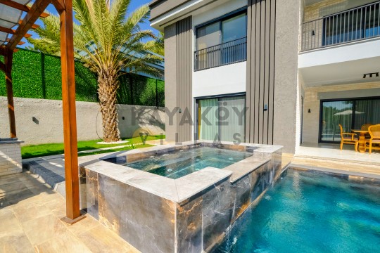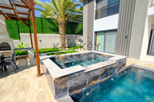 Bahçe : Özel yüzme havuzu, çocuk yüzme havuzu, şezlong , şemsiye, oturma grubu, özel barbekü alanı, yemek masası bulunmaktadır.