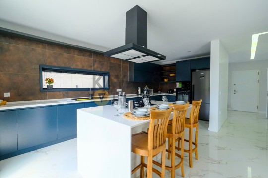 Mutfak : Lüx ve modern mutfak içerisinde buzdolabı, bulaşık makinesi, çamaşır makinesi, yemek takımı, çatal-bıçak seti, tencere, tava, bardak ve diğer mutfak ekipmanları yer almaktadır.