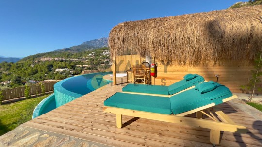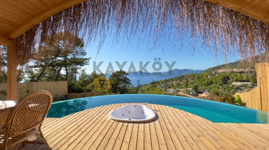 Havuz ısıtmalı değildir, ancak jakuzide 7/24 sıcak su imkânı mevcuttur ve dilediğiniz gibi kullanılabilir. Oda servisi, klima ve teras gibi ekstra konfor detayları bu özel konaklamayı daha keyifli hâle getirir. Ayrıca tesis sahildeki sosyal alanlara ve Faralya çevresindeki doğal güzelliklere kolay erişim sağlar.