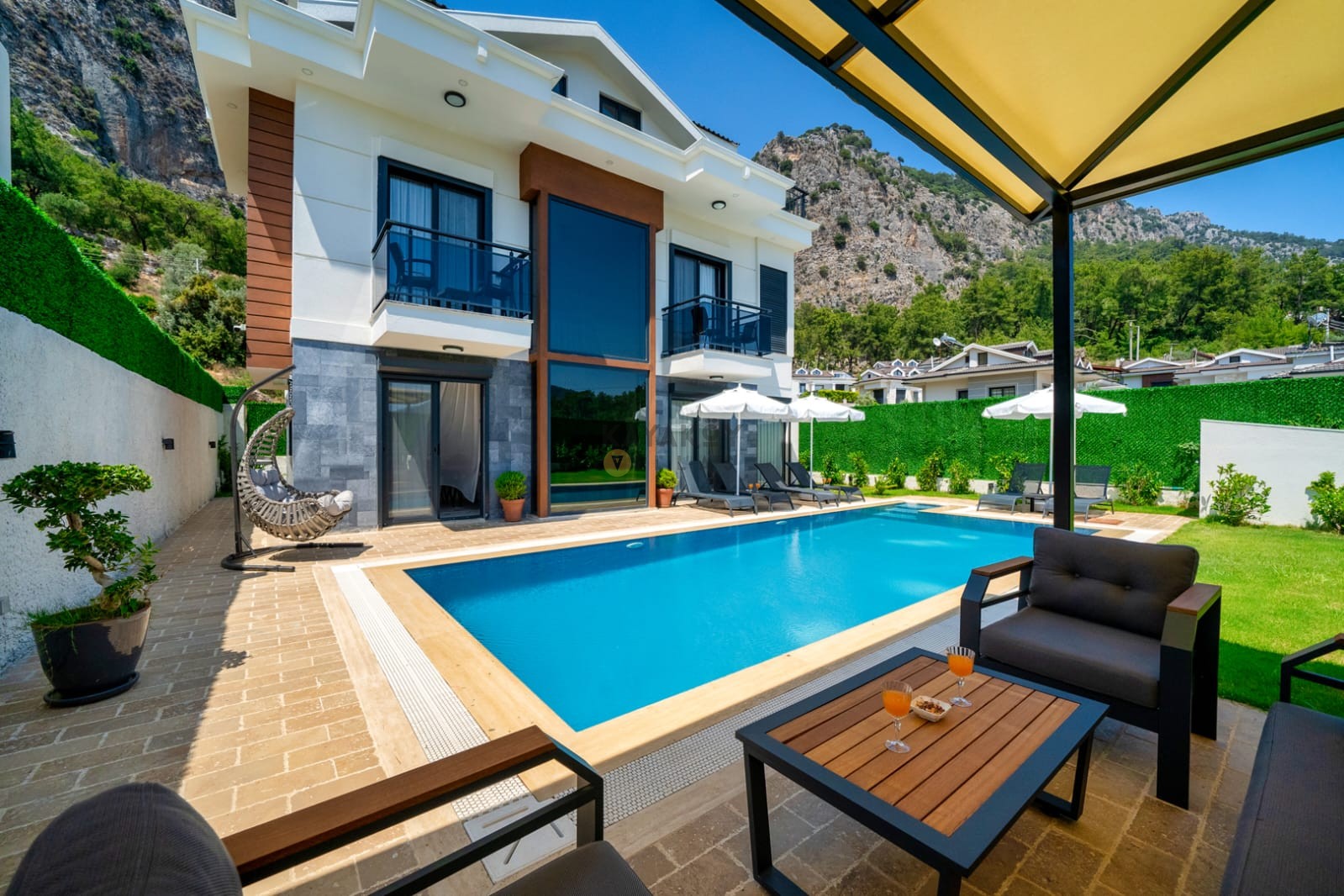 - Ferah İç Mekân: Salon, TV, klima ve havuz terasına erişim sağlayan yaşam alanı.