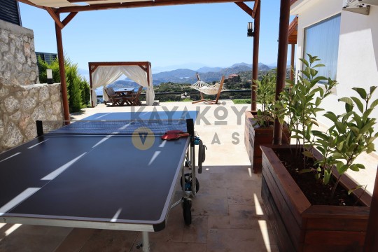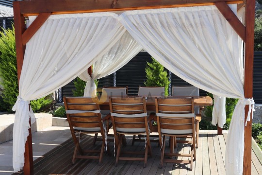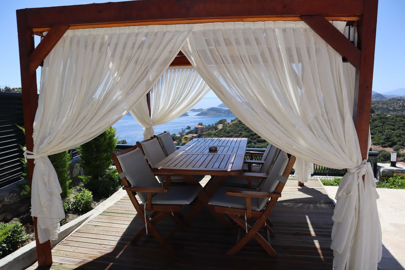 Dış mekânda villa sakinlerine korunaklı özel yüzme havuzu sunulur; havuz çevresinde şezlonglar, güneş şemsiyeleri, veranda oturma alanı ve barbekü/mangal köşesi gibi detaylar tatilinizi daha keyifli hâle getirir. Villa Muhteşem Duo’nun konumu sayesinde Söğüt’ün doğal ortamında hem deniz hem doğa manzarasıyla huzurlu bir tatil deneyimi yaşayabilirsiniz.
