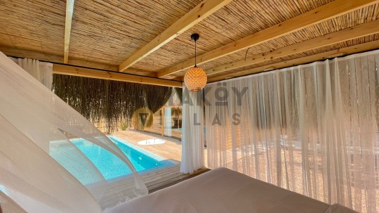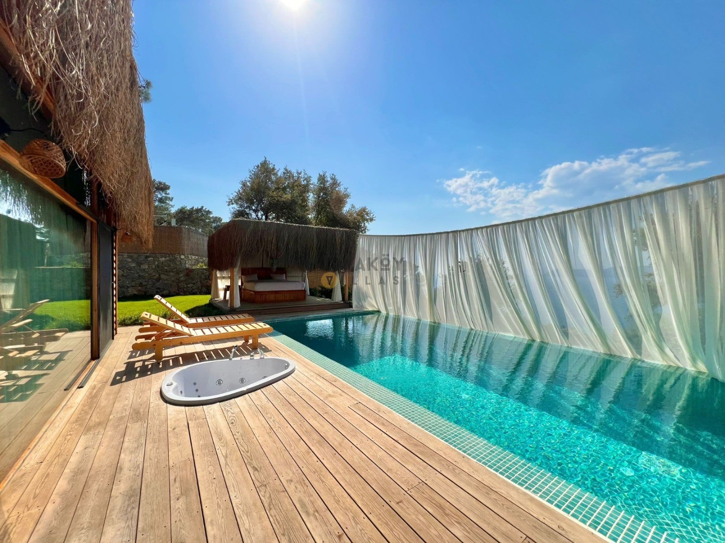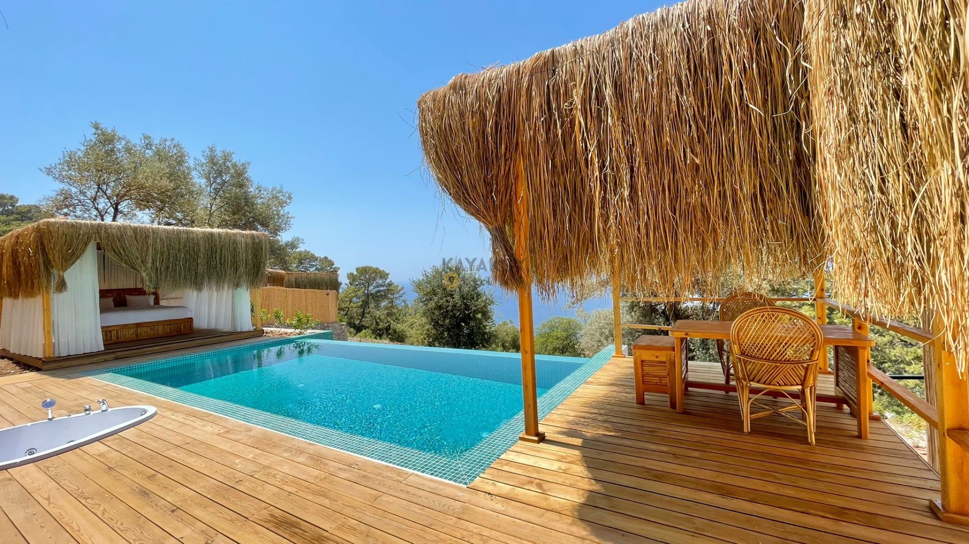 - Mahrem Konaklama: Korunaklı özel havuz ve jakuzili alan ile tamamen dışarıdan görünmeyen tatil keyfi.
