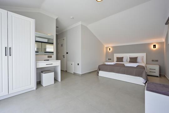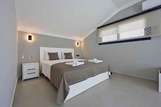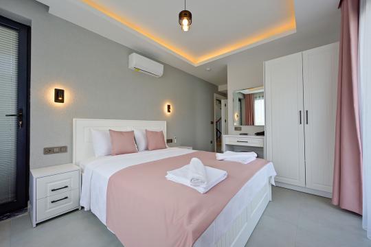 2. Yatak Odası : 1 Çift Kişilik Yatak + klima + Komidin + Elbise Dolabı + Ebeveyn Banyo + TV