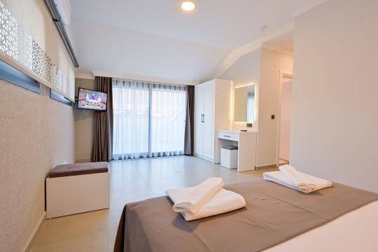 3. Yatak Odası :2 Tek Kişilik Yatak + Klima + Komidin + Elbise Dolabı + Ebeveyn Banyo + TV