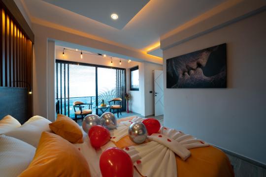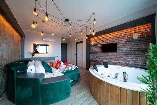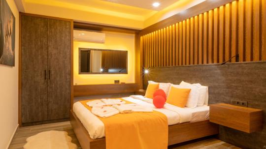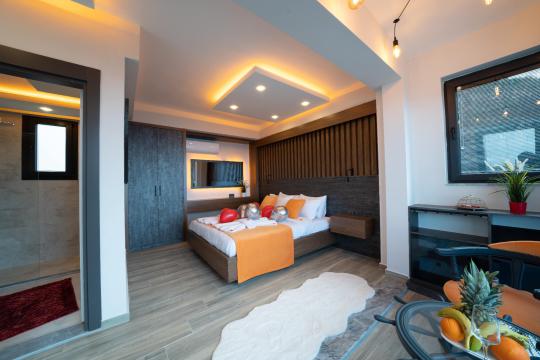 1. Yatak Odası : 1 adet çift kişilik yatak, makyaj masası, klima, elbise dolabı, komodin, Banyo&WC ve Jakuzi bulunmaktadır.