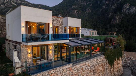 Terra Liva Fethiye ilçesine bağlı Kirme (Kelebekler Vadisi) bölgesinde konumlanmıştır ve 2 yatak odasıyla, 4 kişilik konaklama imkanı sunmaktadır. Kapalı ve ısıtmalı havuzu, eşsiz deniz manzarası, saunası, jakuzisi, kış aylarına özel şöminesi ve temiz havası sayesinde son derece konforlu bir tatil geçirebileceğiniz Terra Liva muhafazakar olarak dizayn edilmiş; çekirdek aileler ve balayı çiftleri için oldukça ideal seçeneklerden biridir. Sonsuz deniz manzrası ve doğa manzarası imkanı sunan villamız oldukça kullanışlı ve zevkli bir şekilde döşenmiştir.