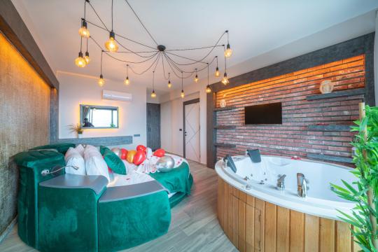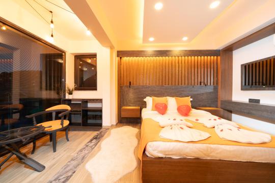 1. Yatak Odası : 1 adet çift kişilik yatak, makyaj masası, klima, elbise dolabı, komodin, Banyo&WC ve Jakuzi bulunmaktadır.