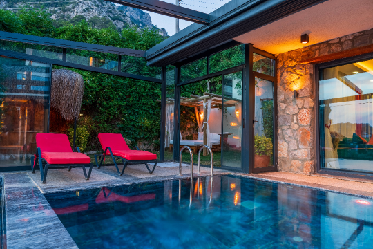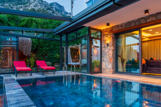 Havuz : Bahçe içerisinde villadan girişi olan ve kış aylarında kapalı, ısıtmalı, korunaklı yüzme havuzu vardır.