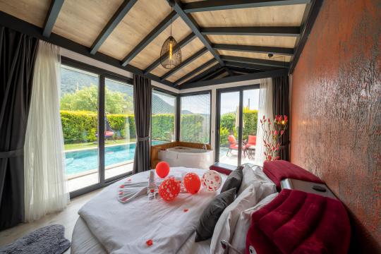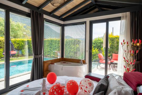 Fethiye'ye bağlı tarihi Kayaköy’ün huzur dolu doğasında konumlanan Villa Terra Roze, özel ve romantik bir tatil için mükemmel bir kaçış sunuyor. Doğanın içinde, gözlerden uzak bu lüks villa, tek yatak odası, modern bir mutfak ve özel ısıtmalı yüzme havuzuyla donatılmıştır. Ölüdeniz Plajı ve çevredeki tarihi mekanlara yakınlığıyla, hem keşif hem de dinlenme arayan çiftler için ideal bir seçenektir. Baştan sona konfor dolu bir deneyim sunan villamız, unutulmaz bir balayı için sizleri bekliyor.