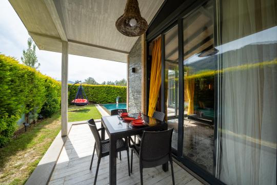 Villamızın hemen yanında aynı ev sahibimize ait Terra Doruk, Terra Nehir, Terra Pine adında villalarımız da mevcuttur, Birlikte tatil yapmak isteyen geniş aile ve arkadaş gruplamız takvimlerde müsaitlik olması durumunda villalarımızı aynı anda kiralayabilirler.