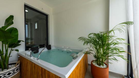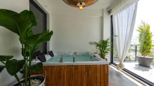 1. Yatak Odası : 1 adet çift kişilik yatak, makyaj masası, klima, elbise dolabı, komodin, Banyo&WC ve Jakuzi bulunmaktadır.