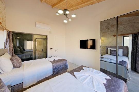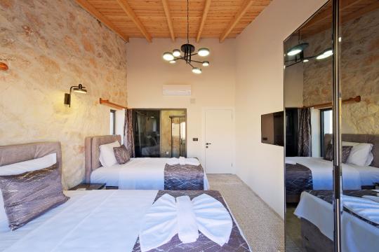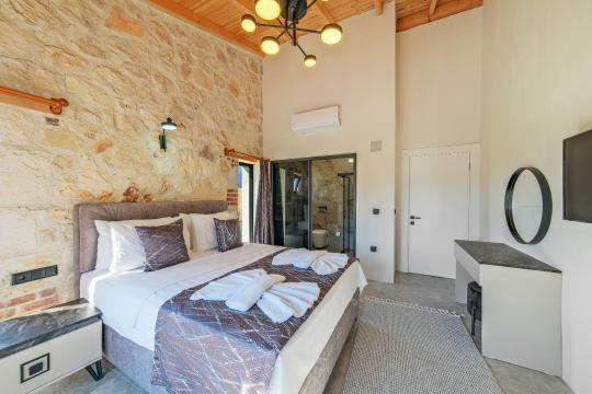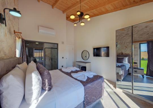 1. Yatak odası : Çift kişilik yatak, jakuzi, televizyon, elbise dolabı ve komodin bulunmaktadır.