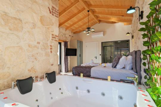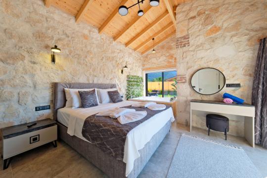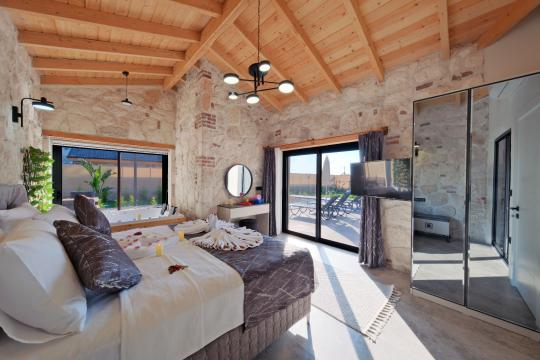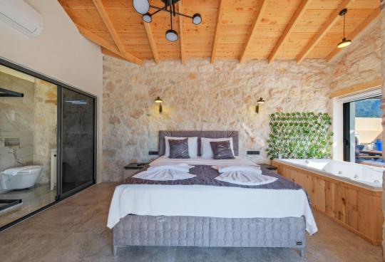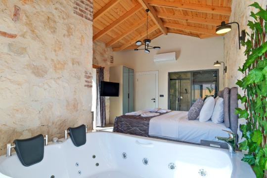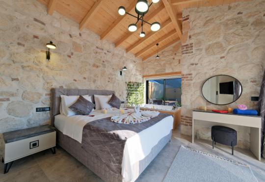 1. Yatak odası : Çift kişilik yatak, televizyon, jakuzi, elbise dolabı, komodin ve ebevyn banyosu mevcuttur.