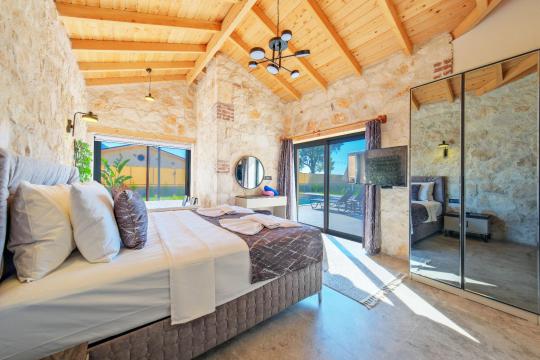 1. Yatak odası : Çift kişilik yatak, televizyon, jakuzi, elbise dolabı, komodin ve ebevyn banyosu mevcuttur.