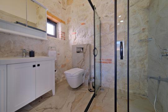 2. Yatak odası : Çift kişilik yatak, televizyon, elbise dolabı, komodin ve ebevyn banyosu mevcuttur.