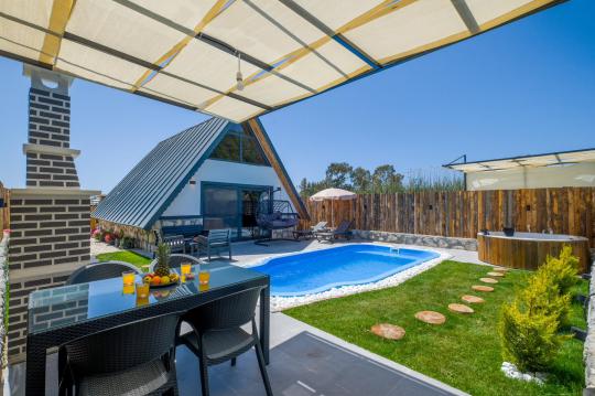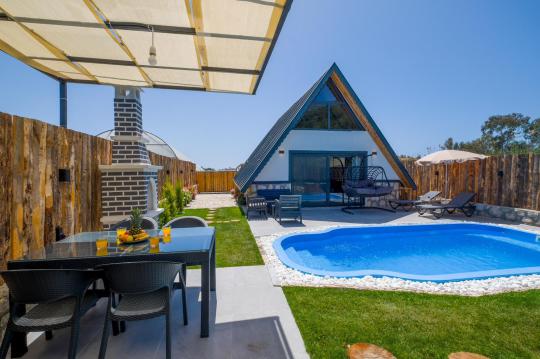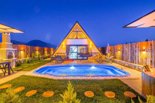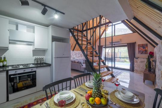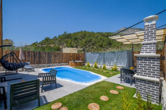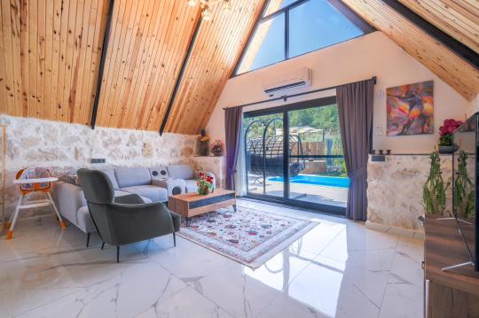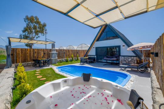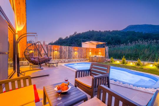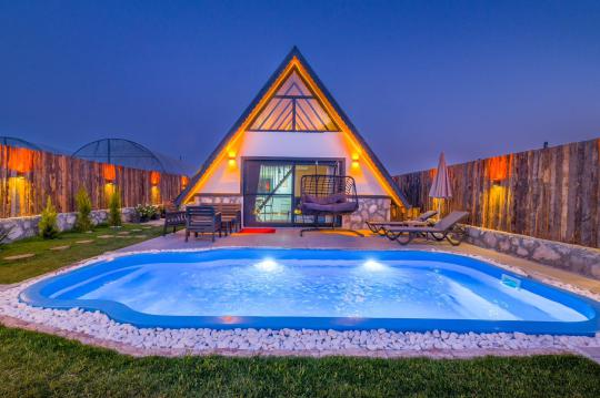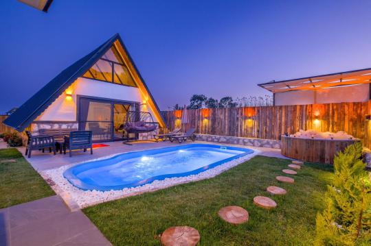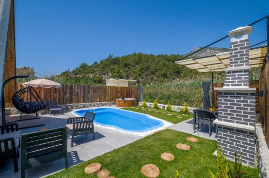 Villa Akmaz taş ve ahşap mimarisinin birleşimi olan bir bungalovdur. Villamızın tek suit yatak odalı olup doğa ve akarsu manzarasına sahiptir. Villamızın ferah havuz terasında size özel bir havuz barbekü ,yemek masası ve salıncak bulunmaktadır. Villamızın önünde temiz yüzülebilir doğal akarsu vardır, villamızın aynı zamanda havuz alanı korunaklı olup muhafazakar ailelerimiz için ideal bir tercih olacaktır.