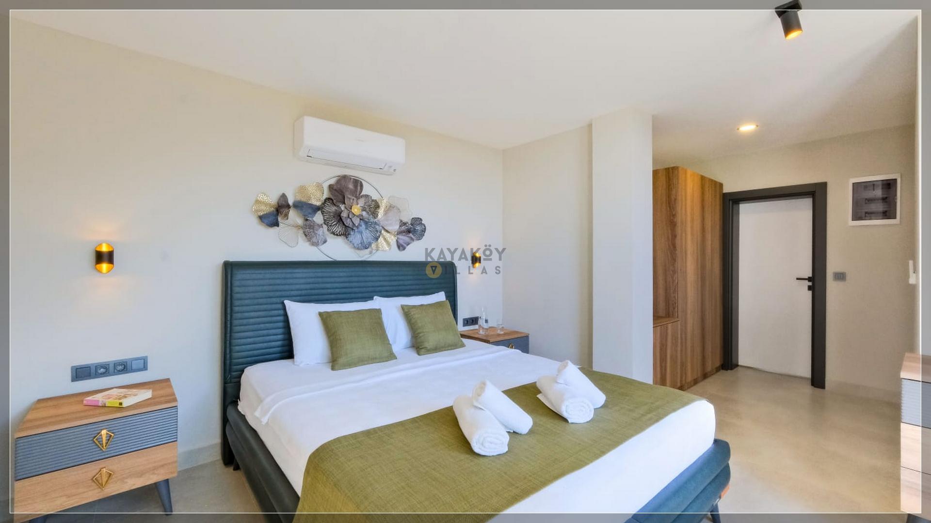2. Yatak Odası : Klimalı, suit aile yatak odasıdır. Yatak odasında 1 adet çift kişilik yatak, klima, elbise dolabı, makyaj masası ve komodin bulunmaktadır. Banyo mevcuttur.