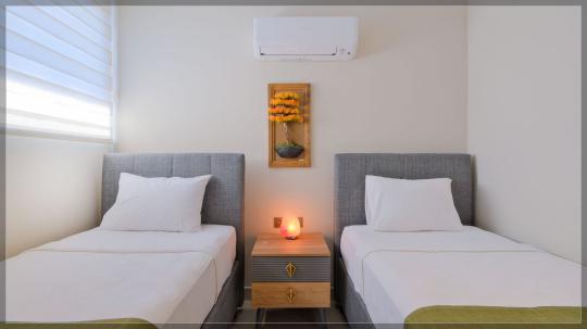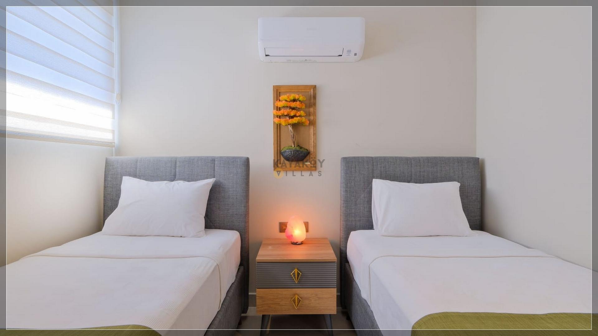 3. Yatak Odası : Klimalı, suit genç yatak odasıdır. Yatak odasında 2 adet tek kişilik yatak, klima, elbise dolabı ve komodin bulunmaktadır. Banyo mevcuttur.