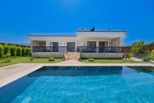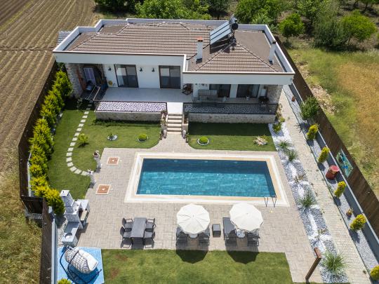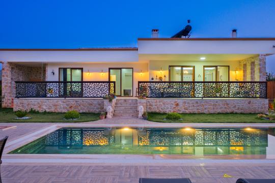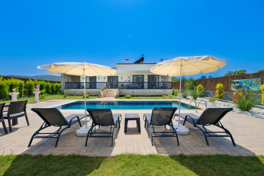 Bu eşsiz villa, unutulmaz bir tatil deneyimi sunmak için özenle tasarlanmıştır. Korunaklı bir havuza sahip olması, size ve sevdiklerinize özel bir ortam sağlarken, gizlilik ve rahatlık sunar.