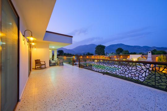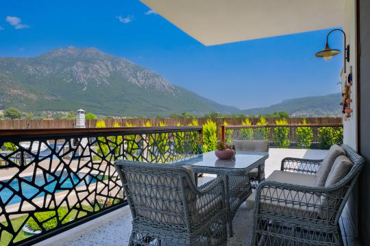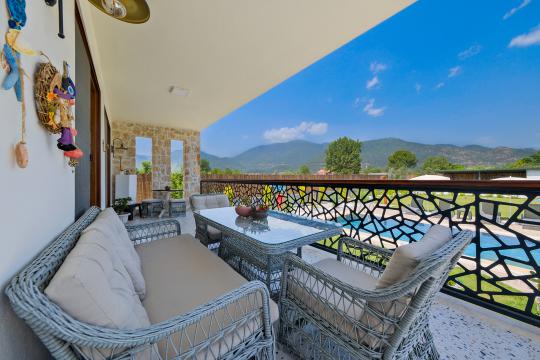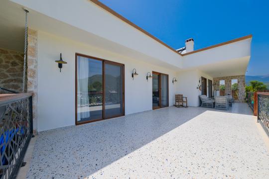 Fethiye / Yeşilüzümlü’de bulunan Villa Aleyna'nın benzersiz özelliklerinden biri, ferah bir verandaya sahip olmasıdır. Bu güzel veranda, sizlere özgürce vakit geçirebileceğiniz geniş bir alan sunar. Günün yorgunluğunu atabileceğiniz, açık havada keyifli bir akşam yemeği yiyebileceğiniz veya sadece serin bir içecek eşliğinde dinlenebileceğiniz bir ortam sağlar.
