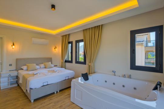 1. Yatak Odası : Oda içerisinde 1 adet çift kişilik yatak, komodin, jakuzi, kıyafet dolabı, klima ve banyo/WC yer almaktadır.
