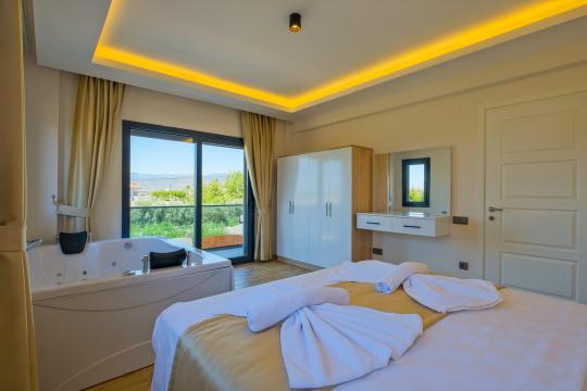 2. Yatak Odası : Oda içerisinde 1 adet çift kişilik yatak, kıyafet dolabı, jakuzi ,klima ve banyo/WC yer almaktadır.
