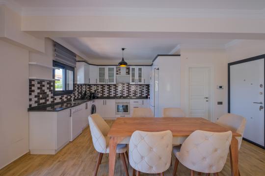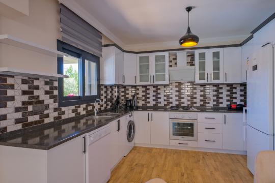 Mutfak : Modern Amerikan mutafk içerisinde buzdolabı, bulaşık makinesi, çamaşır makinesi, fırın, 4’lü ocak seti, tost makinesi, çay makinesi, mutfak araç gereçleri(tencere&tavalar, tabak&bardaklar vb.) ve yemek masası bulunmaktadır.