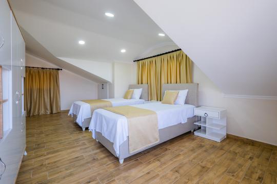 3. Yatak Odası : Oda içerisinde 2 adet tek kişilik yatak, komodin, kıyafet dolabı ve ortak banyo/WC bulunur.