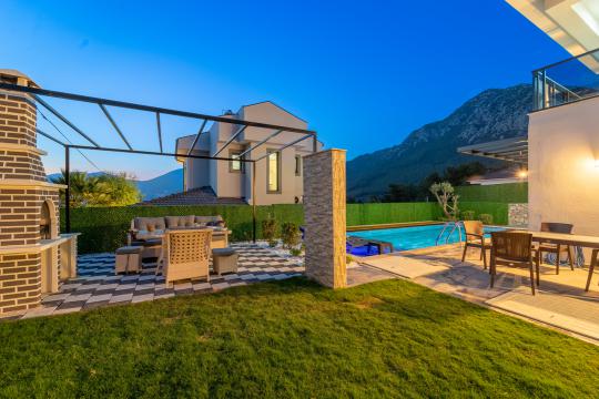 Bölgenin dokusuyla bütünleşen mimarisi ve geniş bahçe alanına sahip olan villamız; misafirlerini kucaklamaya hazır olan oturma alanı, şezlong takımı ve barbekü alanı ile hayallerinizdeki tatile ev sahipliği yapacaktır.