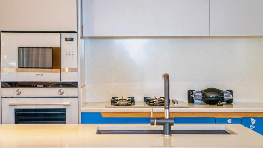 Mutfak Özellikleri: Tam donanımlı Amerikan mutfağımızda; buzdolabı, bulaşık makinesi, fırın, mikrodalga fırın, 4'lü ocak, kettle ve 6 kişilik yemek masası bulunmaktadır. Ayrıca eksiksiz yemek ve mutfak ekipmanları sizlerin kullanımına sunulmaktadır.