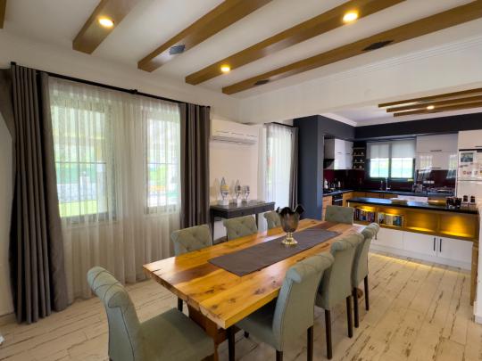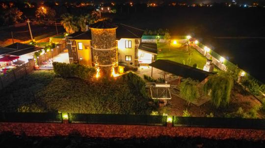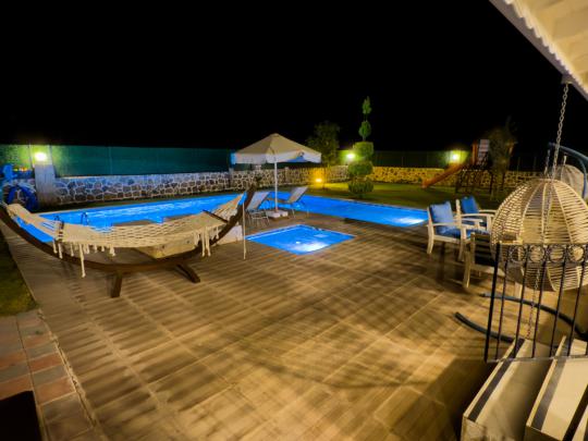 5 yatak odası, 4 banyo tuvaleti bulunan villamız 10 kişilik geniş konaklama kapasitesine sahiptir. Geniş bahçesinde bulunan masa tenisi, oyun parkı ve çim alanıyla çocuklarınız güvenle oyun oynarken sizin de açık havanın çıkarabileceğiz bahçe oturma takımı, rahat şezlongları, yemek masası, barbekü, salıncak, hamak ve bahçe çardağı bulunmaktadır. Salonun da şömine, ebeveyn odasında jakuzi bulunan villamız; geniş konaklama kapasitesi, lüks ve kullanışlı mobilyaları, zevkle döşenmiş iç tasarımı ile 5 yıldızlı otel konforunda bir tatili size özel olarak sunmak için tasarlandı.