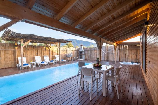Villa Arche 1; 4 kişilik kapasiteye sahip villada 2 yatak odası yer alıyor.. Açık mutfağı ve kendine ait bahçesinde bir havuzu var. Mutfağında bulaşık makinesi, buzdolabı, ankastre fırın, tost makinesi ve mutfakta ihtiyaç olan hemen hemen bütün gereçler bulunuyor. Villanın bahçesinde özel havuzu mevcut. Barbekü, masa, sandalyeler, şezlonglar ve şemsiyeler bahçe keyfini sınırsız yaşamanıza imkan tanıyor. Salonunda oturma grubu, televizyon, eşyalar bulunurken, tüm odalar için ayrı klima imkanı var.