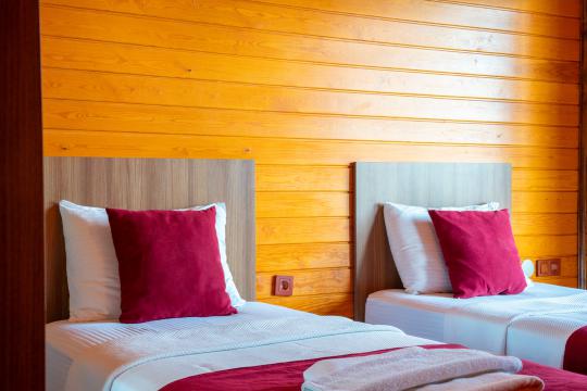 2. Yatak Odası : 2 adet tek kişilik yatak, elbise dolabı, komodin, klima, banyo ve WC bulunmaktadır.