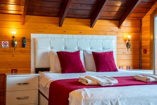 1. Yatak Odası :1 adet çift kişilik yatak, elbise dolabı, komodin, klima, saç kurutma makinesi, banyo ve WC bulunmaktadır.