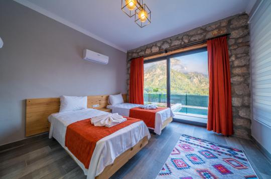Fethiye ilçesi Kirme Faralya Mevkiinde bulunan Villa Arin, 2 yatak odalı 4 kişilik konaklama kapasitesine sahip olup Dublex Doğa Manzaralı özel havuzlu villalarımızdan biridir. Sakin ve huzurlu bir tatil geçirmek isteyen Muhafazakar konuklarımız ve çekirdek aileler için özel olarak tasarlanmış olup, konforunuz için her ayrıntı düşünülerek dizayn edilmiştir.