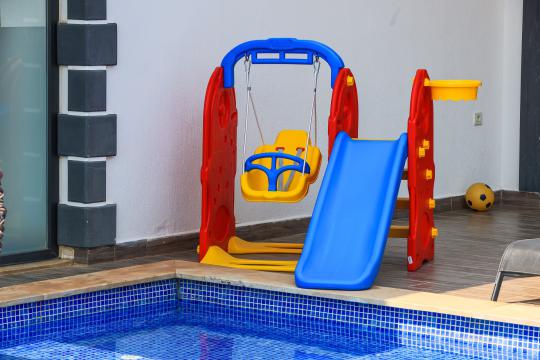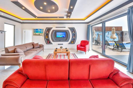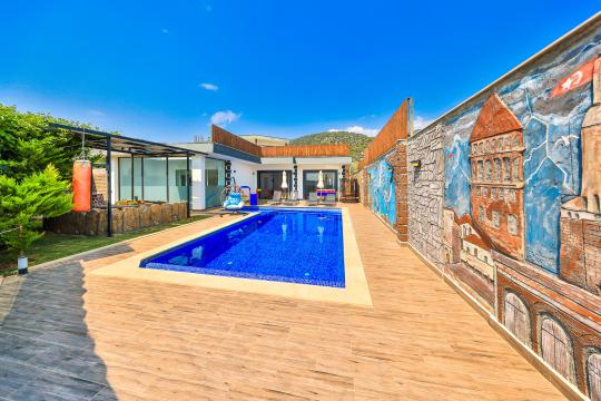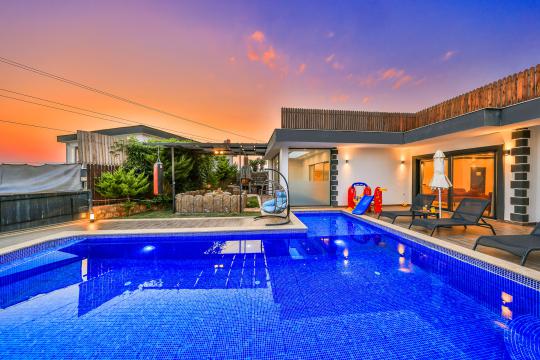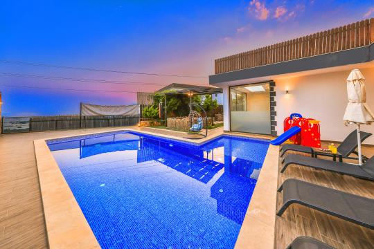Korunaklı havuz alanına sahip olan villanın, havuz terasında kapasiteye uygun şezlong takımı, oturma grubu ve barbekü alanı bulunan villanın; yine havuz terasına açılan konforlu oturma odası ve tam donanımlı açık mutfağı, bir yatak odasında çift kişilik yatak, ebeveyn banyosu; diğer yatak odasında da iki tek kişilik yatak ve ebeveyn banyosu bulunmaktadır. Ayrıca kapalı ısıtmalı havuzu bulunan villa, dört mevsim tatil planlarınıza ev sahipliği yapmaya adaydır.